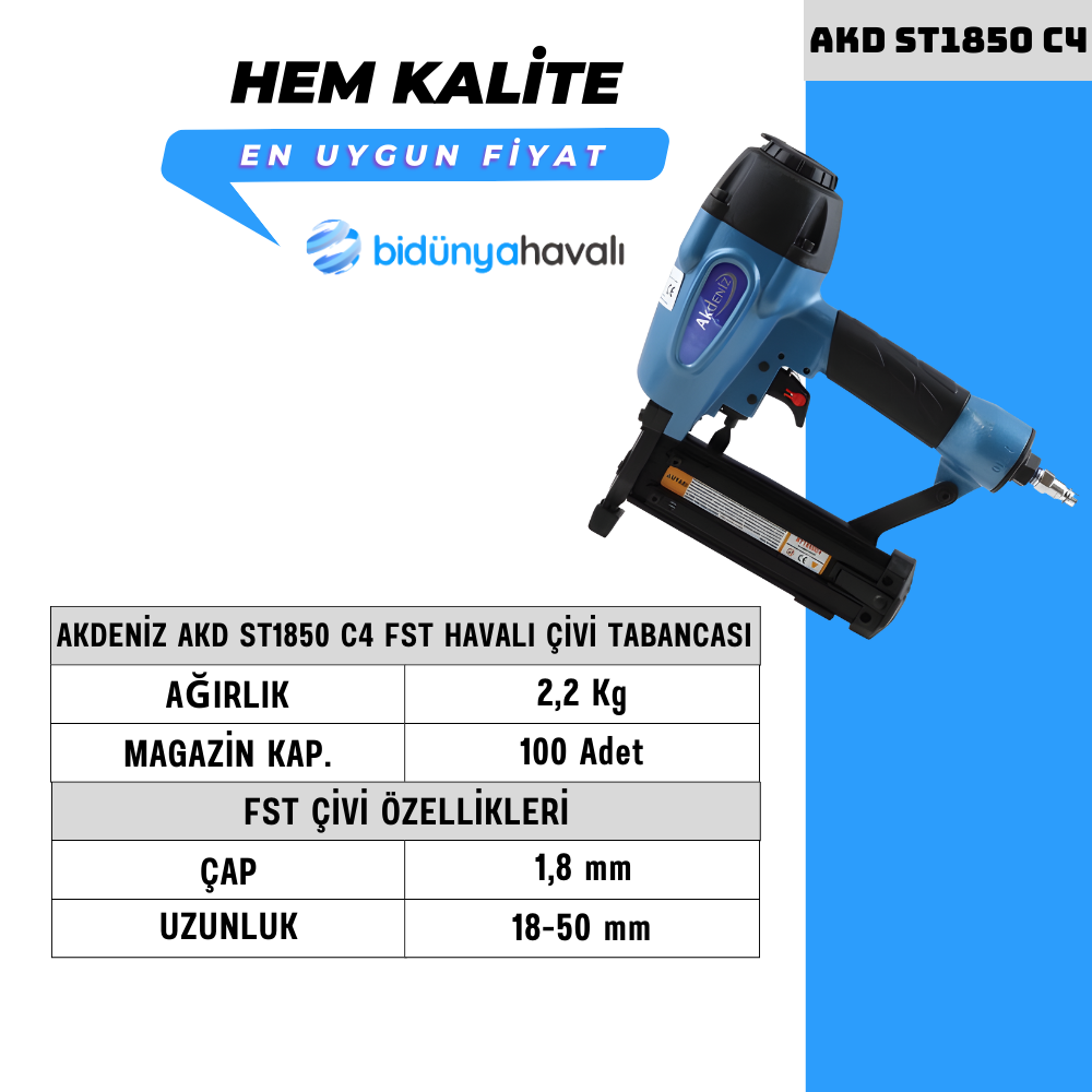 AKDENİZ AKD ST1850 C4 FST HAVALI ÇİVİ TABANCASI 1,8 mm
