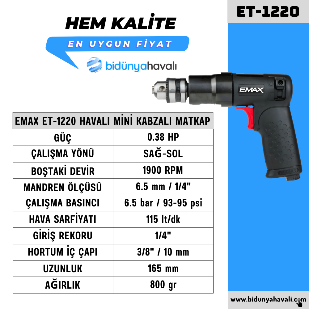 EMAX ET-1220 HAVALI MİNİ KABZALI MATKAP 6.5 mm