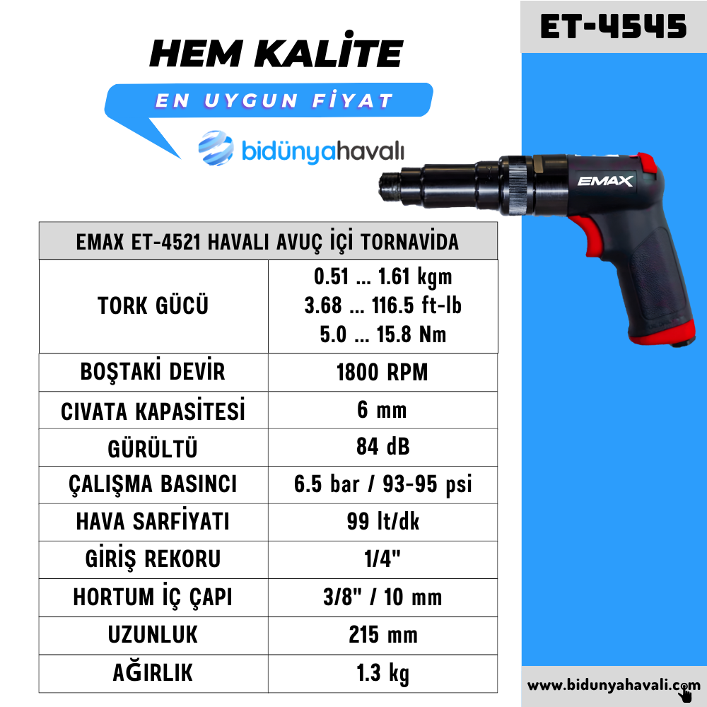 EMAX ET-4545 HAVALI AVUÇ İÇİ TORNAVİDA 6 mm