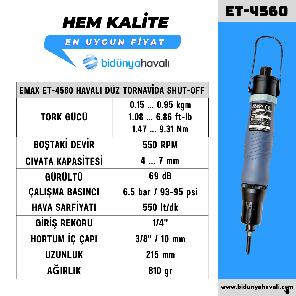 EMAX ET-4560 HAVALI DÜZ TORNAVİDA SHUT-OFF 6 mm