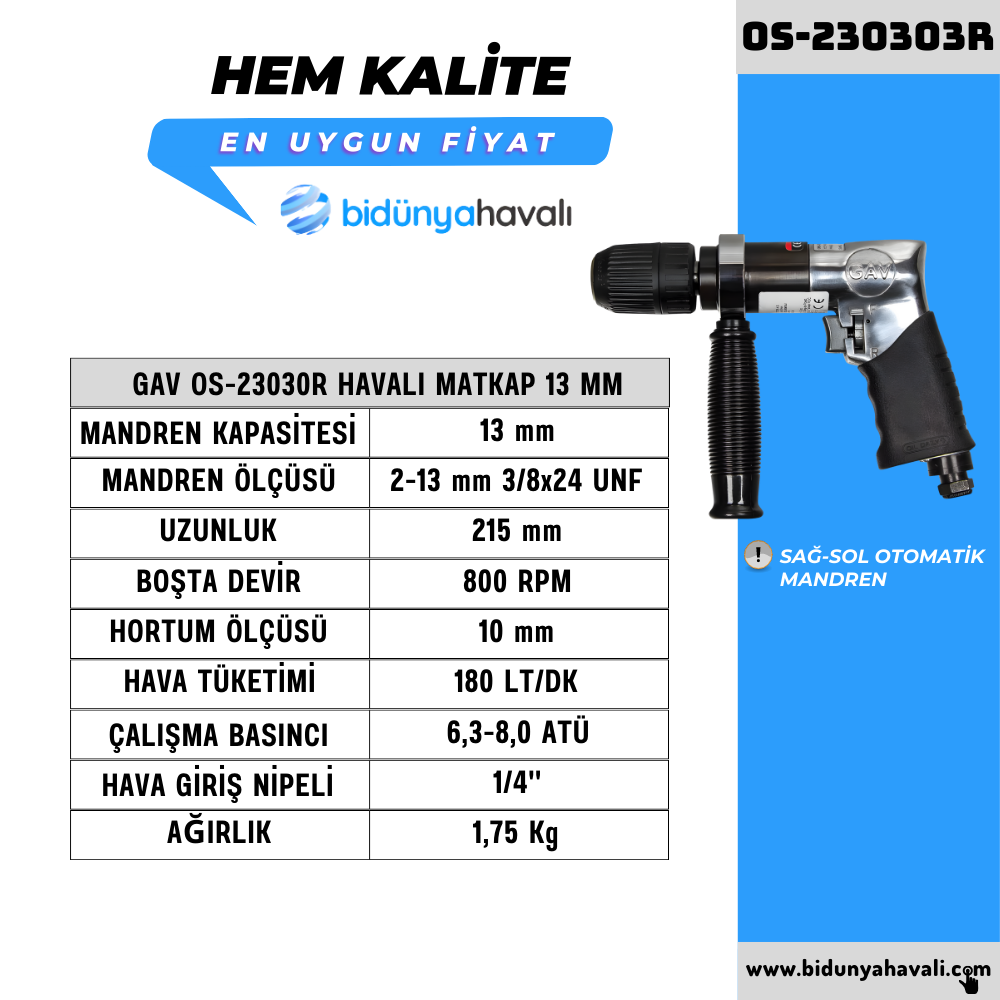 GAV OS-230303R HAVALI MATKAP 13 mm