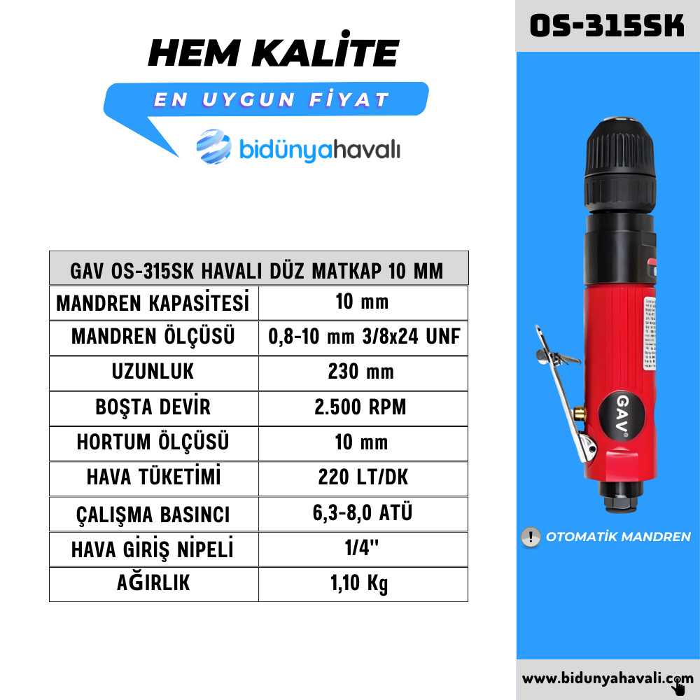 GAV OS-315SK HAVALI DÜZ MATKAP 10 mm