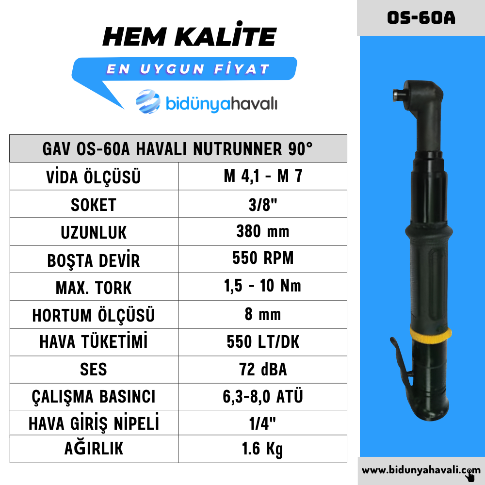 GAV OS-60A Havalı Nutrunner 90° (Shut Off)