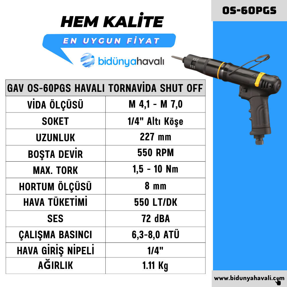 GAV OS-60PGS Havalı Tornavida - Tabanca Tip (Shut Off)