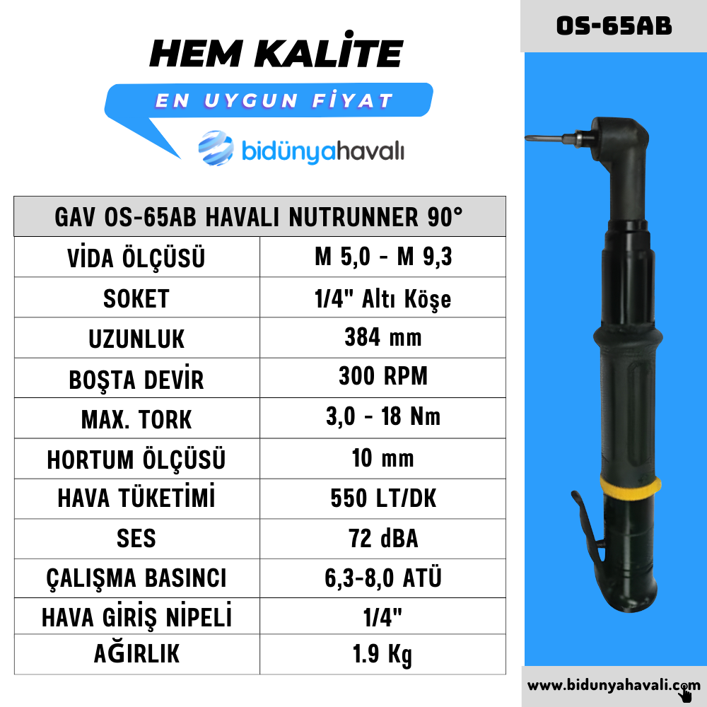 GAV OS-65AB Havalı Nutrunner 90° (Shut Off)
