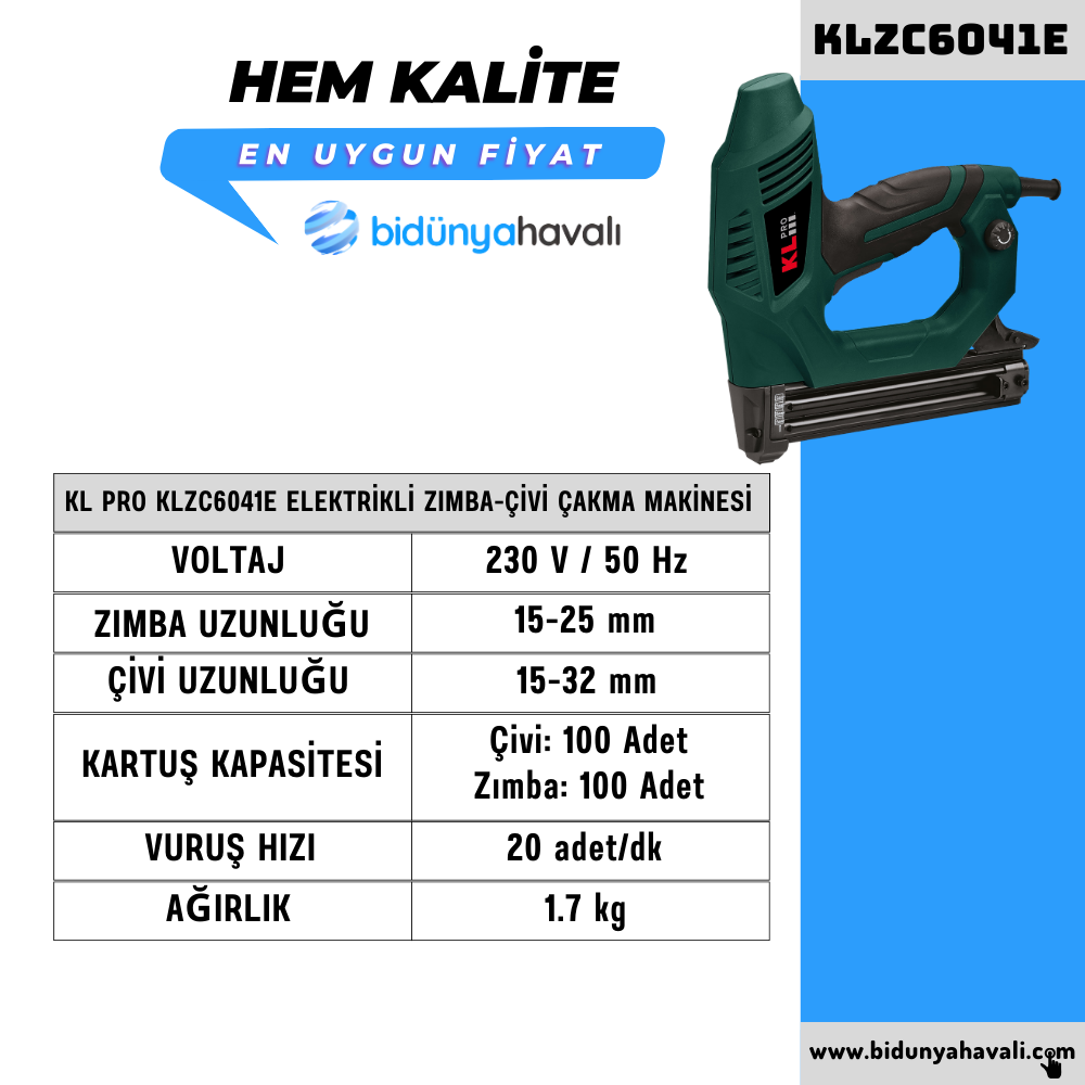 KL PRO KLZC6041E ELEKTRİKLİ ZIMBA-ÇİVİ ÇAKMA MAKİNESİ
