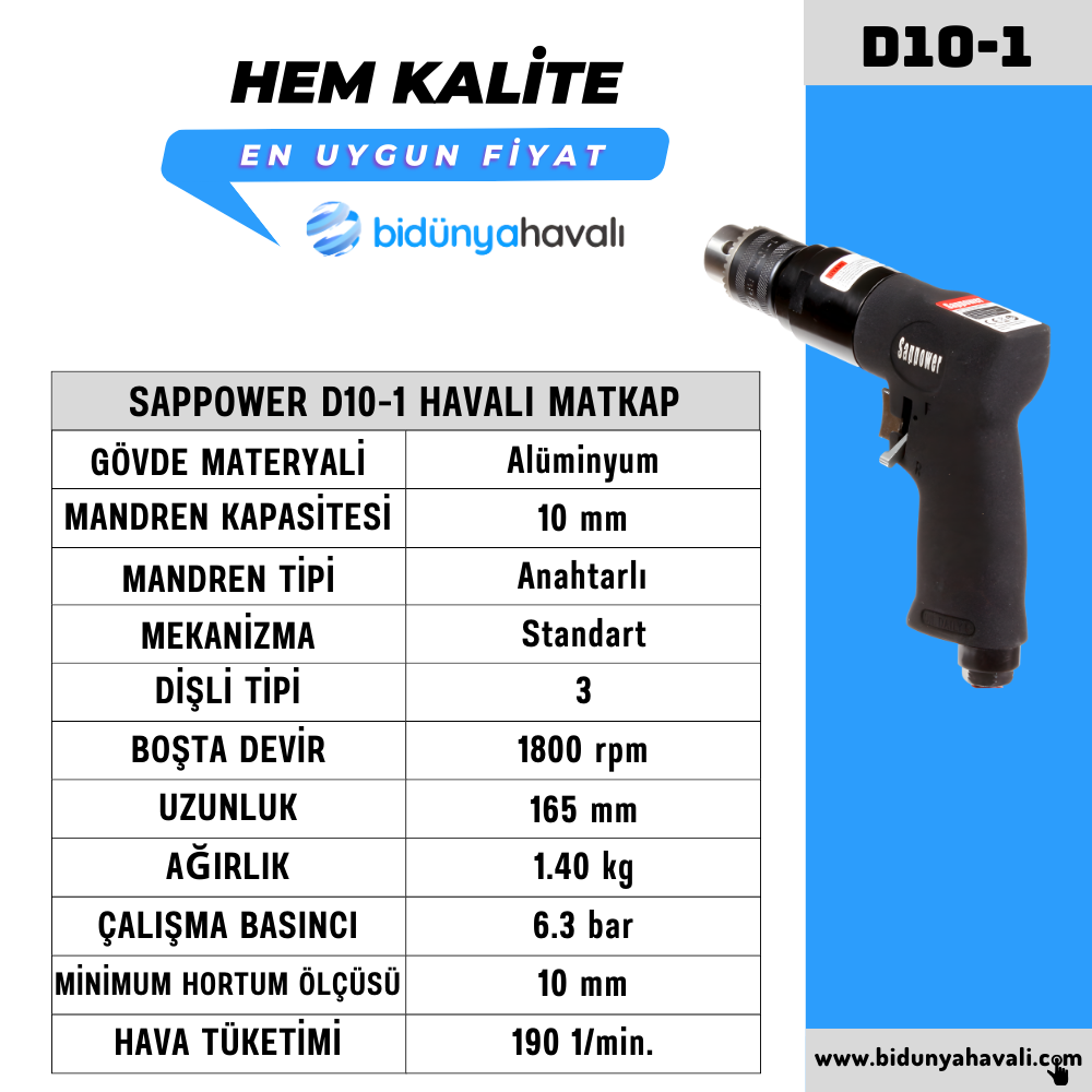 SAPPOWER D10-1 HAVALI MATKAP 10 mm SAĞ-SOL