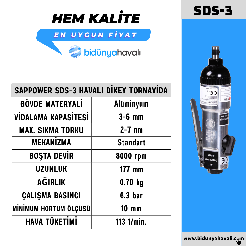 SAPPOWER SDS-3 HAVALI DİKEY TORNAVİDA SAĞ-SOL