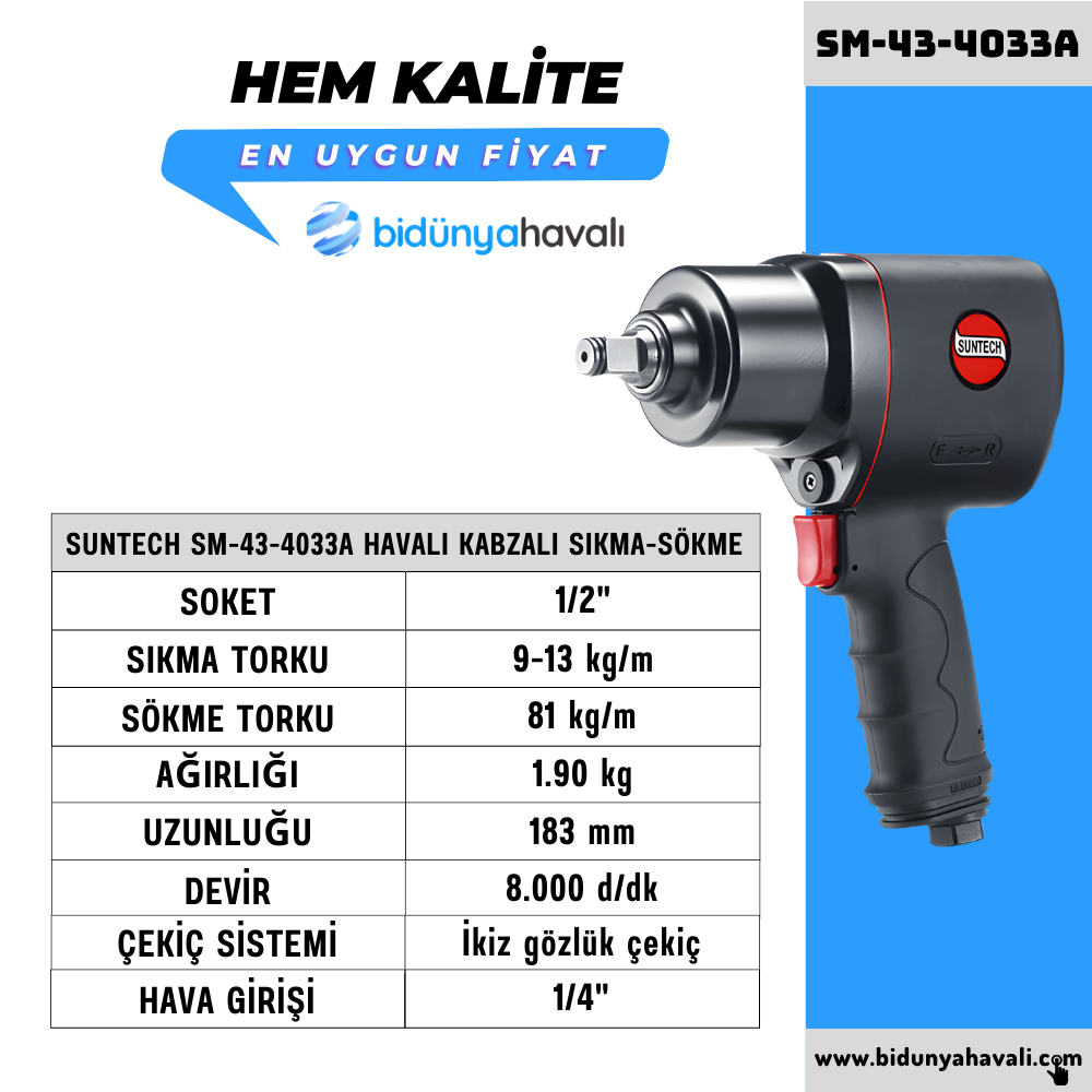 SUNTECH SM-43-4033A HAVALI TORK KONTROLLÜ SOMUN SIKMA-SÖKME 1/2"