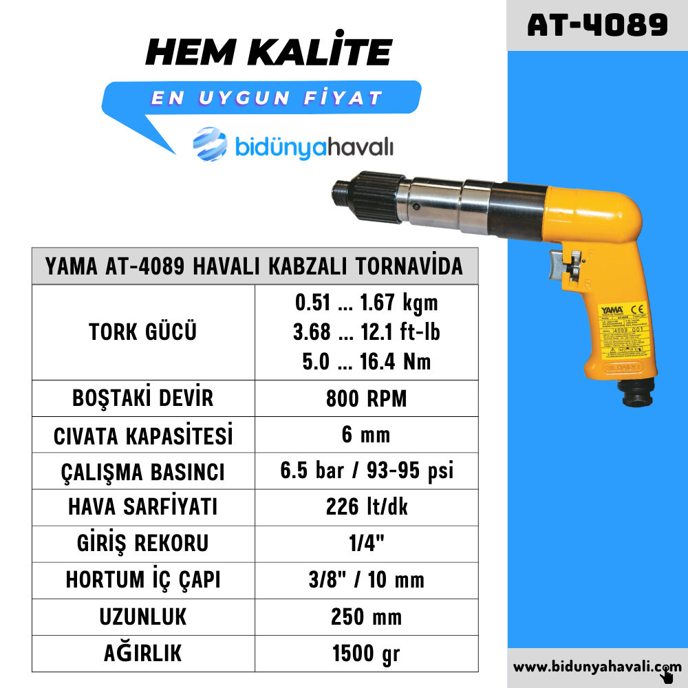 YAMA AT-4089 HAVALI KABZALI TORNAVİDA ENDÜSTRİYEL DIŞTAN TORK AYARLI 6 mm